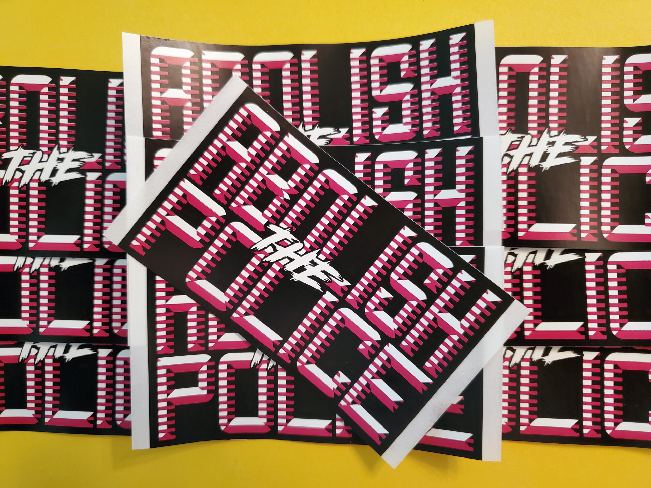 These high-quality stickers are priced to sell in quantity, so that you can decorate your block, protect an area from fascist recruiting, discourage lawmen, and give them to sympathetic friends and family.