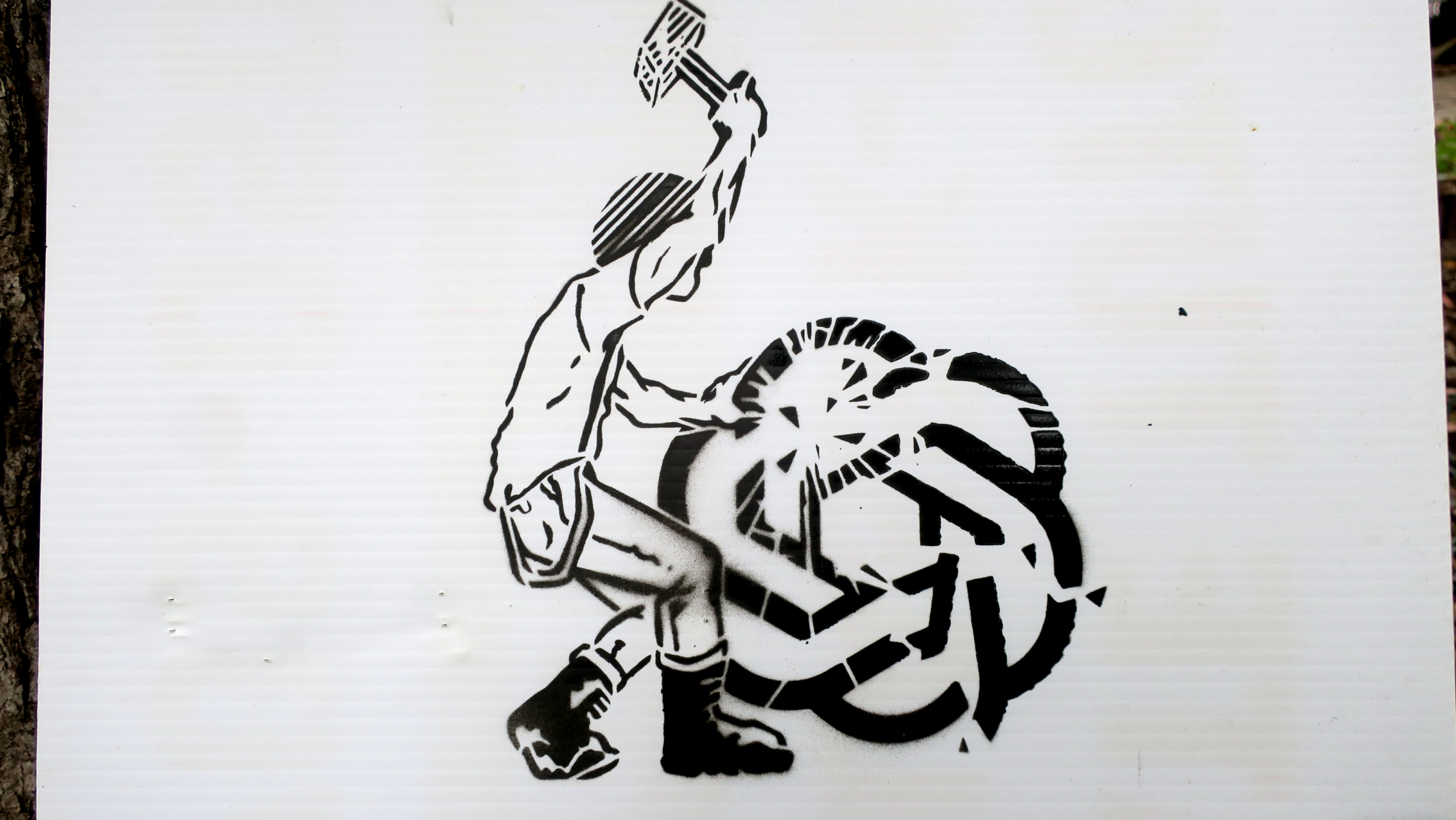 The latest in Municipal Adhesives vandal supply technology: STENCILS! Like stickers, but for the braver among us. They don’t peel off, and you can reuse them indefinitely! You supply the spray paint and the courage. Use the cardstock included with the stencil to further mask and prevent stencil overspray.