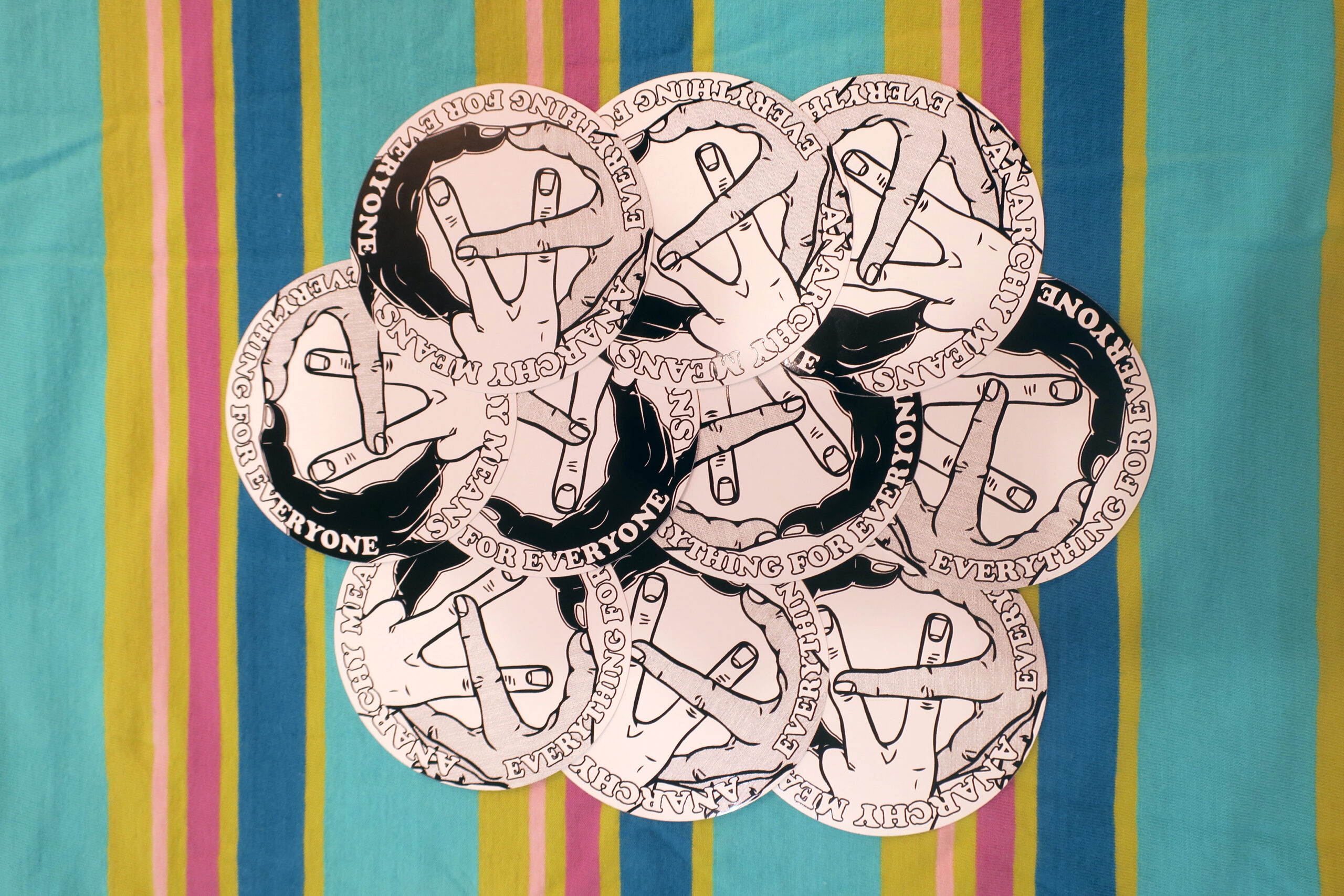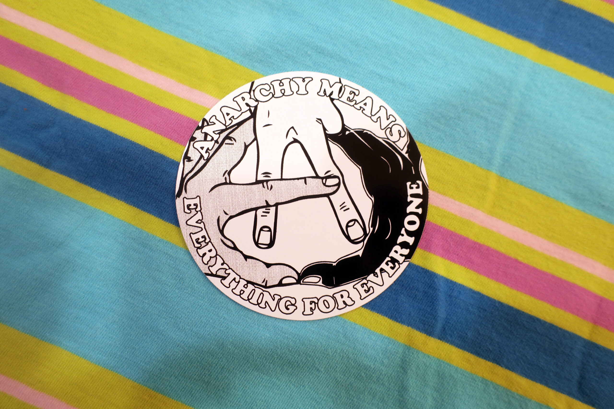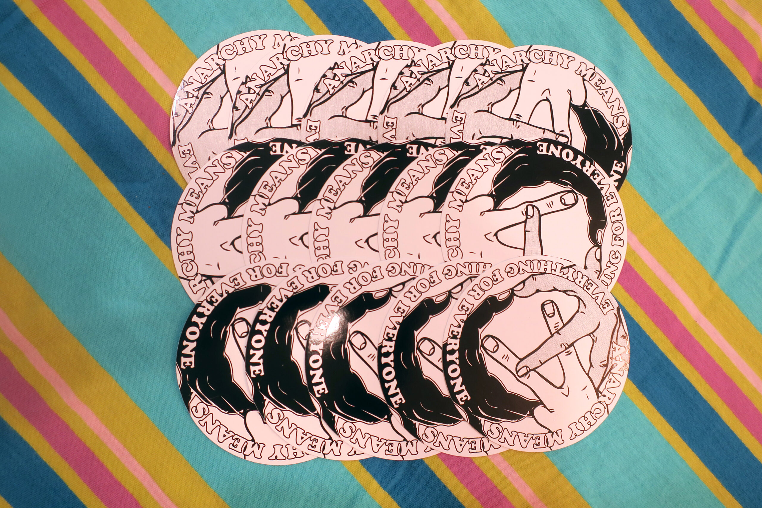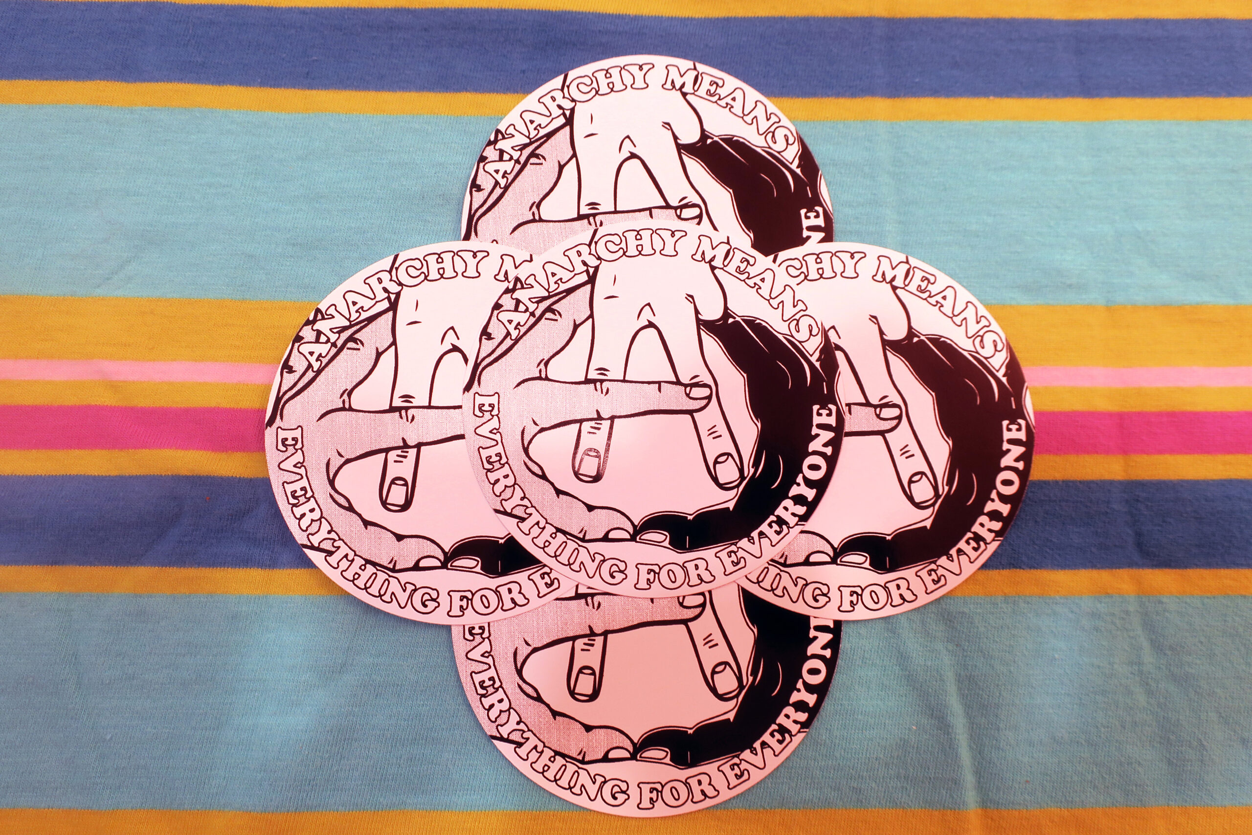 These high-quality stickers are priced to sell in quantity, so that you can decorate your block, protect an area from fascist recruiting, and give them to sympathetic friends and family.