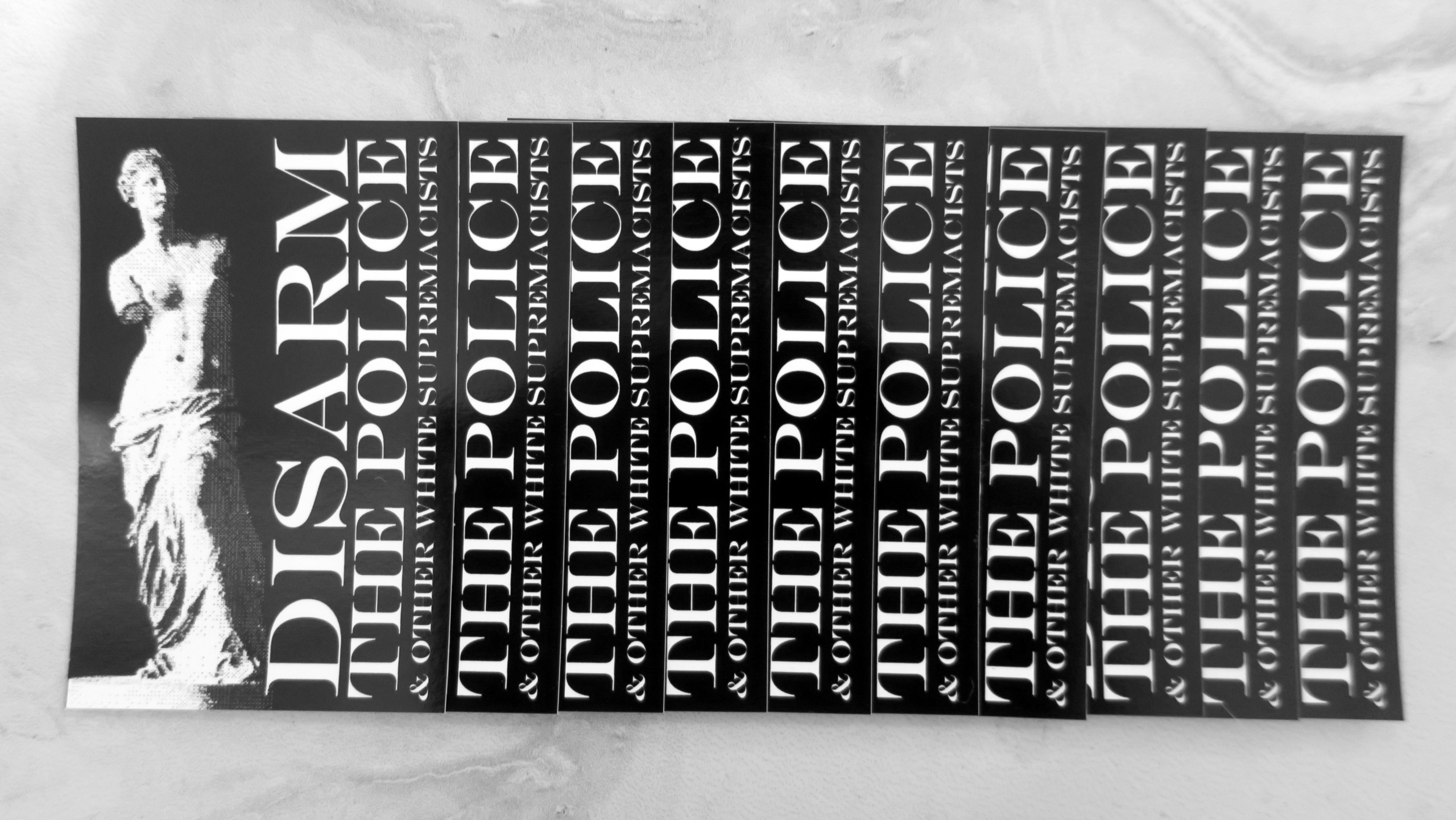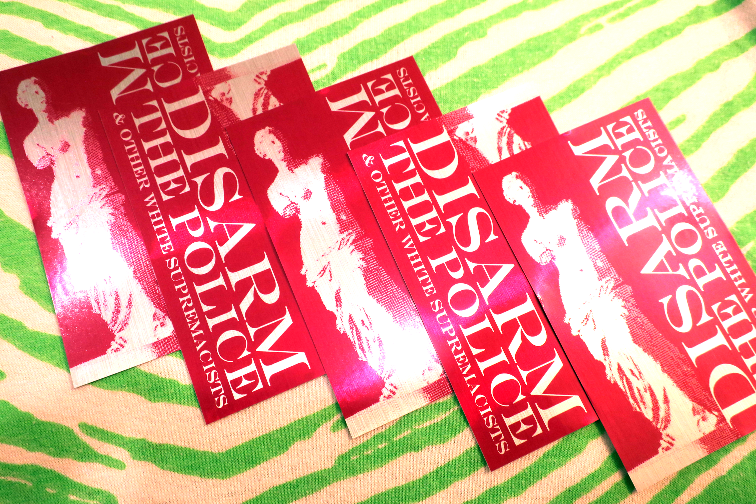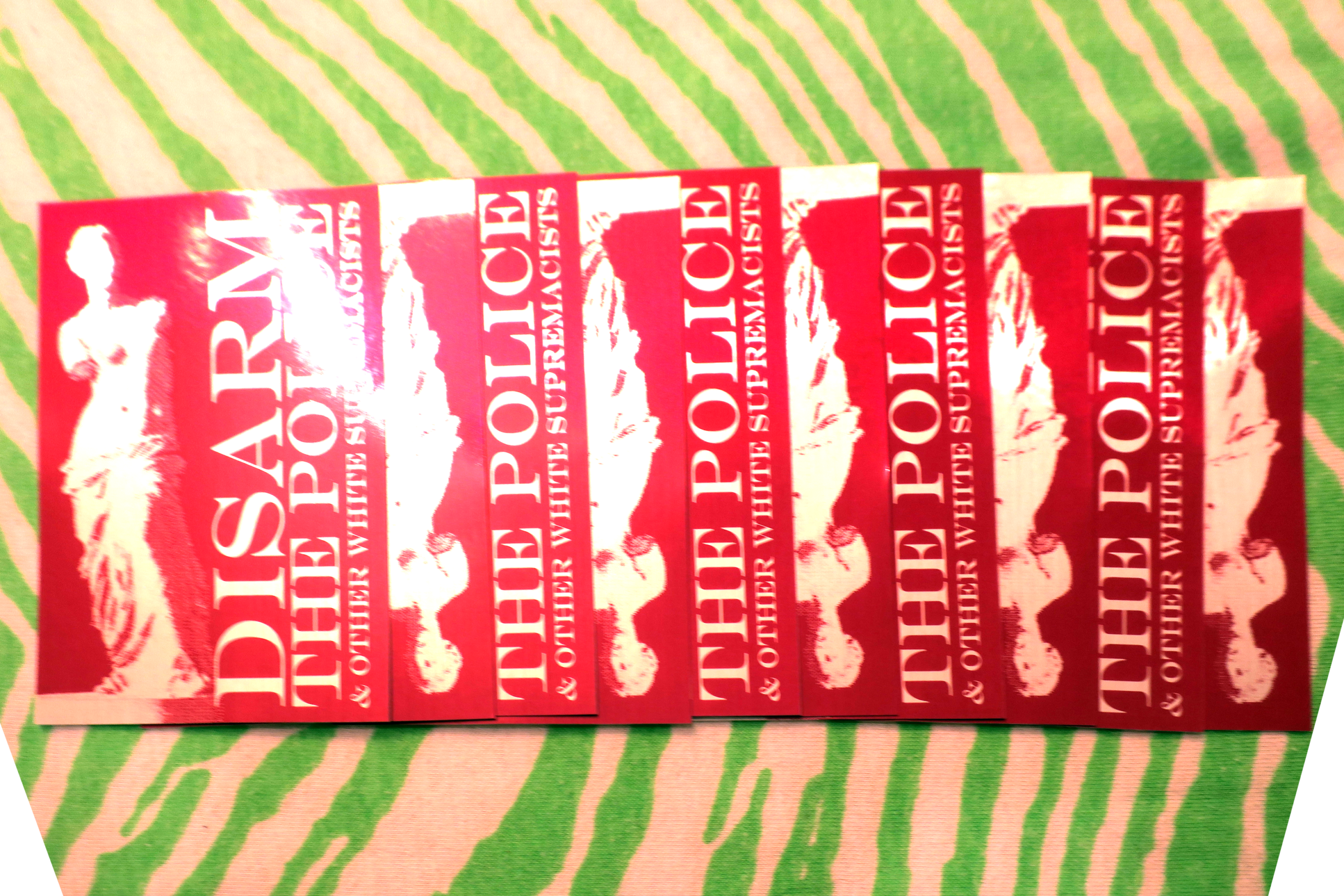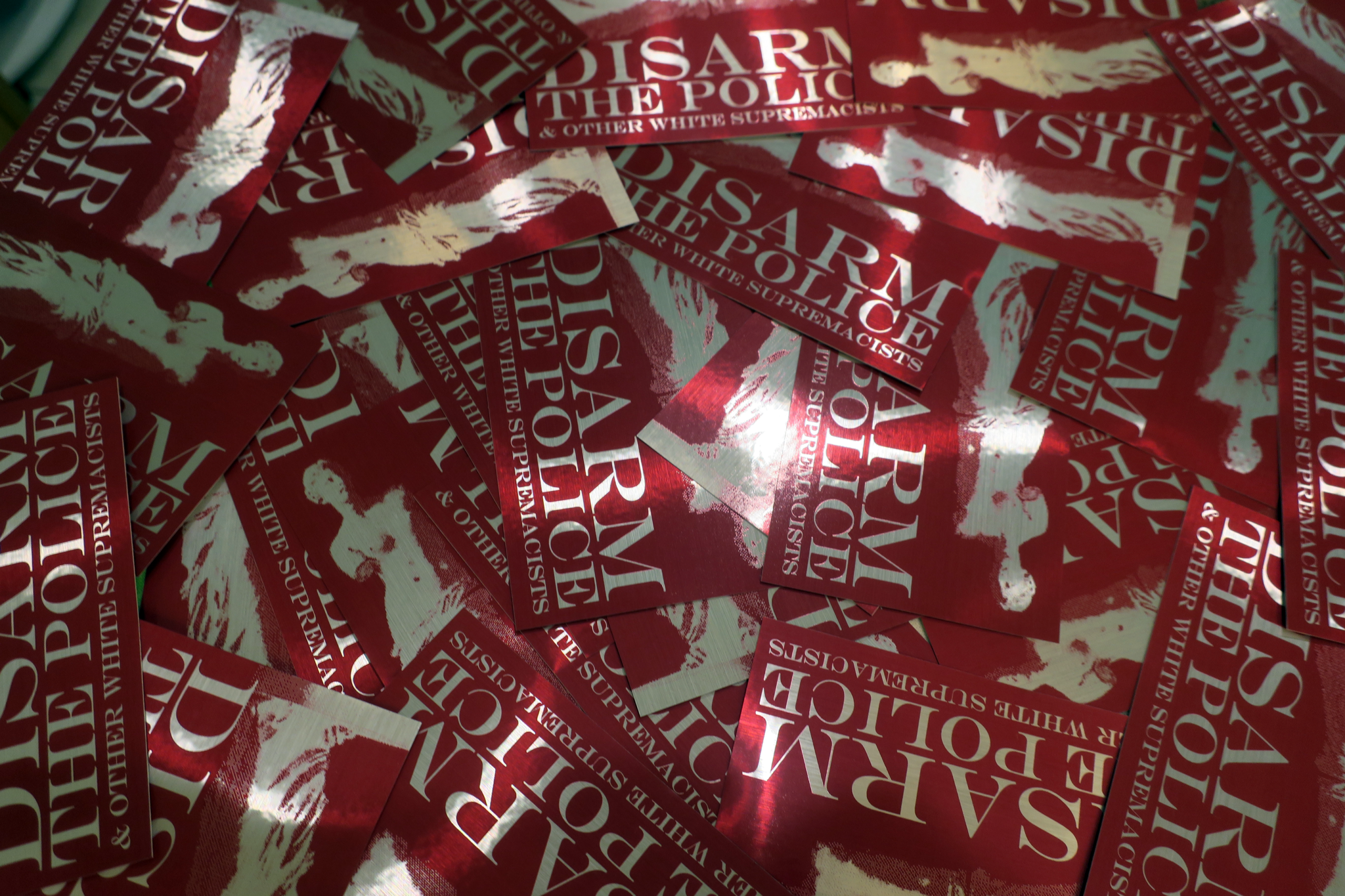 These high-quality stickers are priced to sell in quantity, so that you can decorate your block, protect an area from fascist recruiting, and give them to sympathetic friends and family.