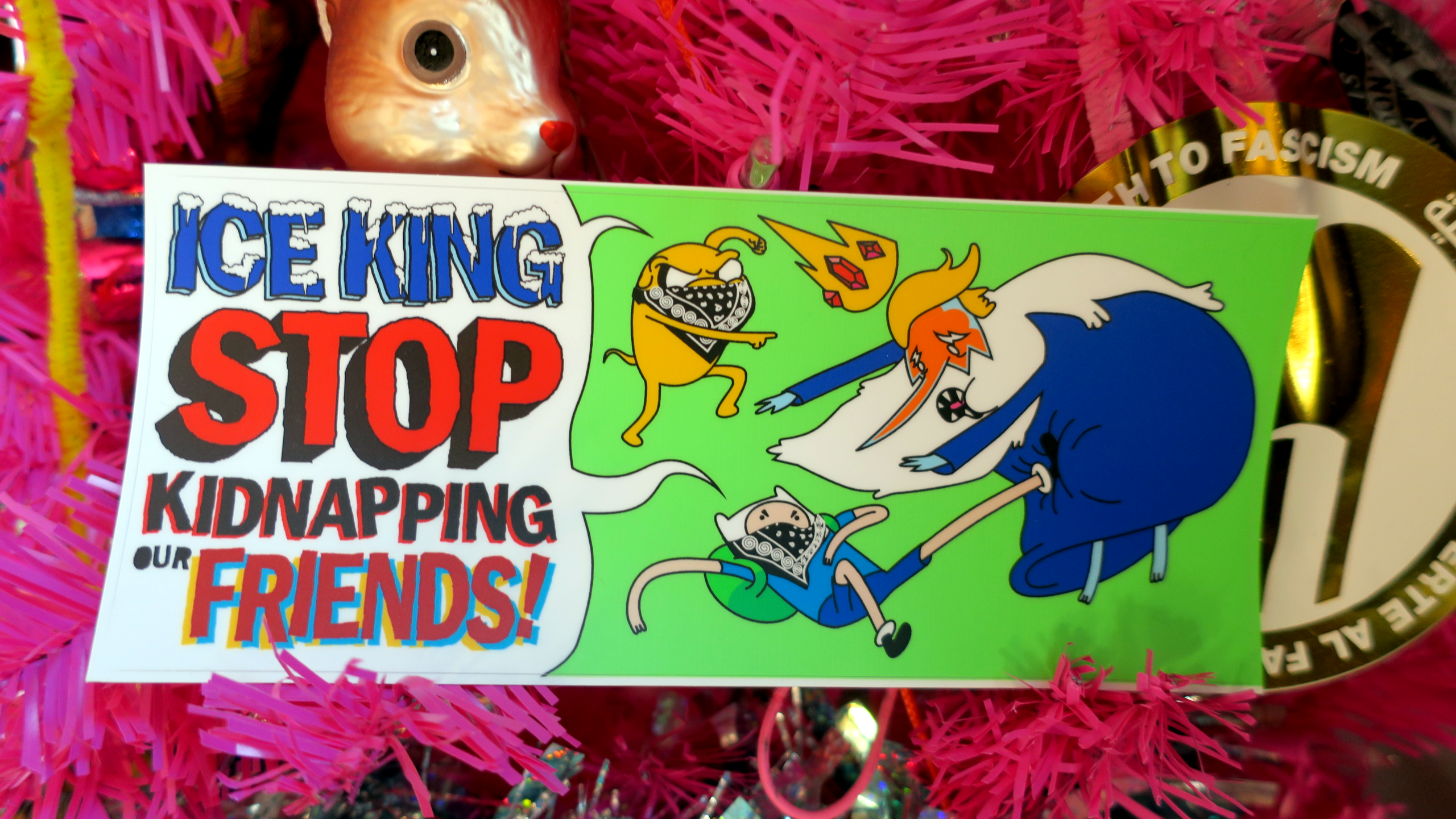 These stickers are printed in the highest quality by our buds at OffColorDecals, and we spared no expense on this big boy. You can use them to decorate your block, protect an area from fascist recruiting, and give them to sympathetic friends and family.