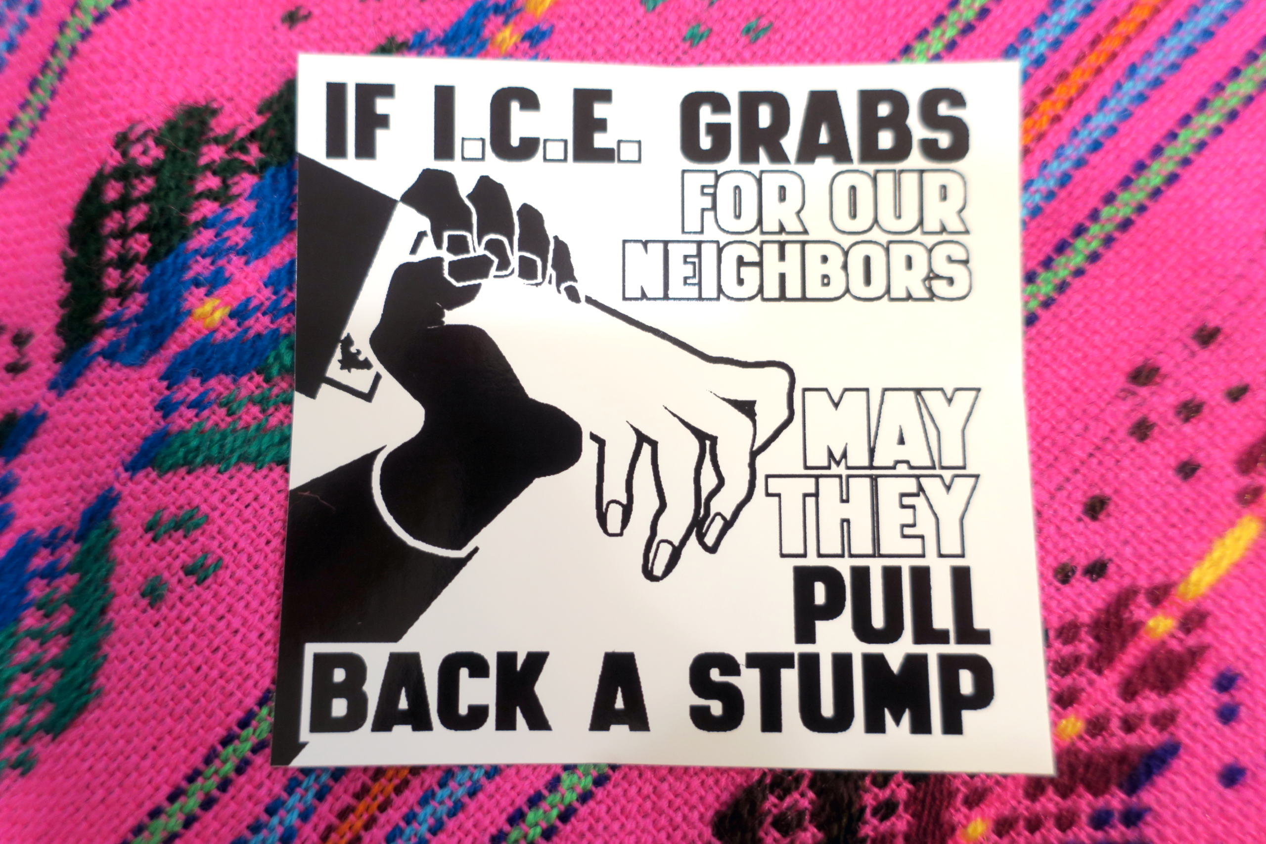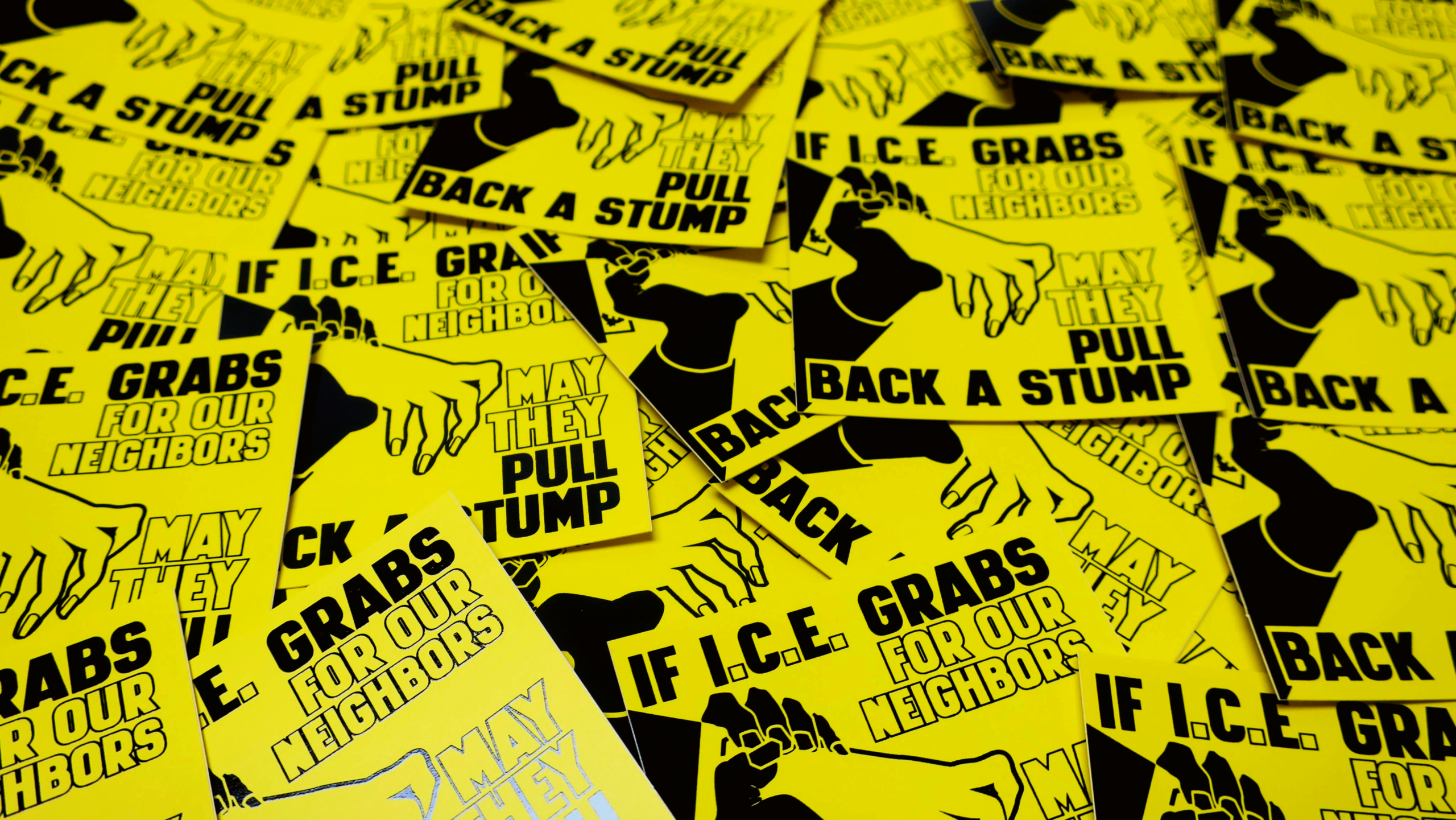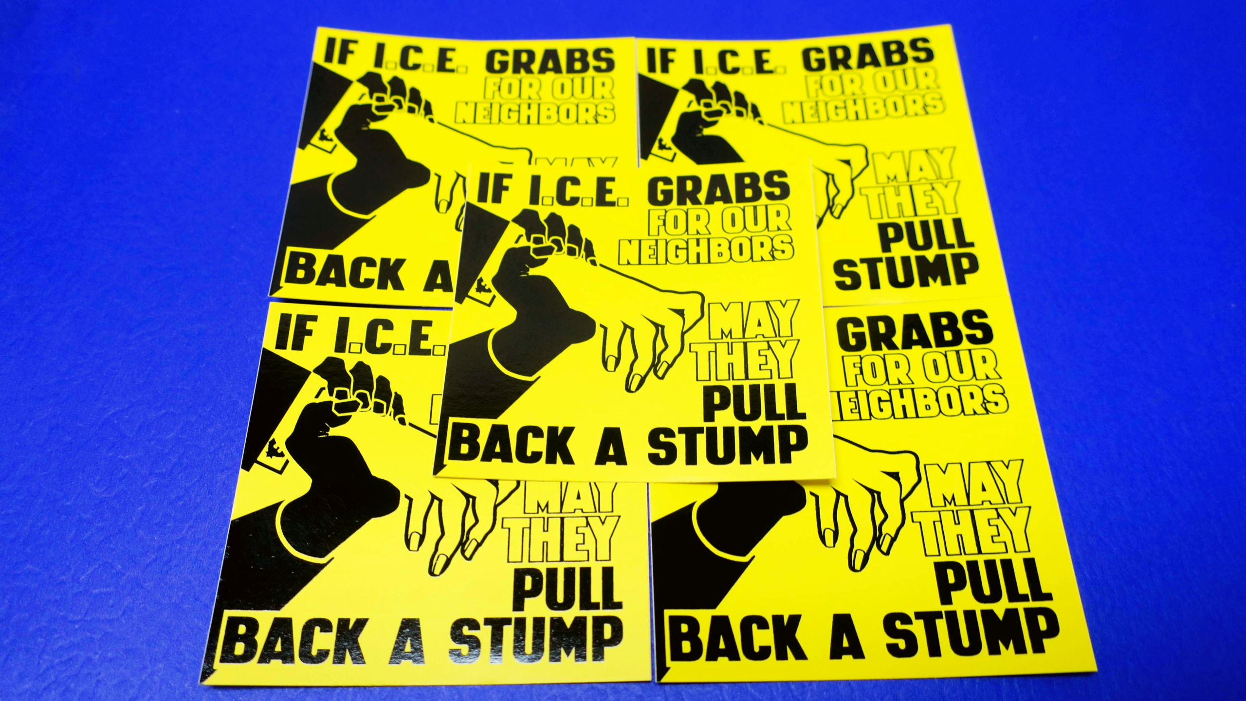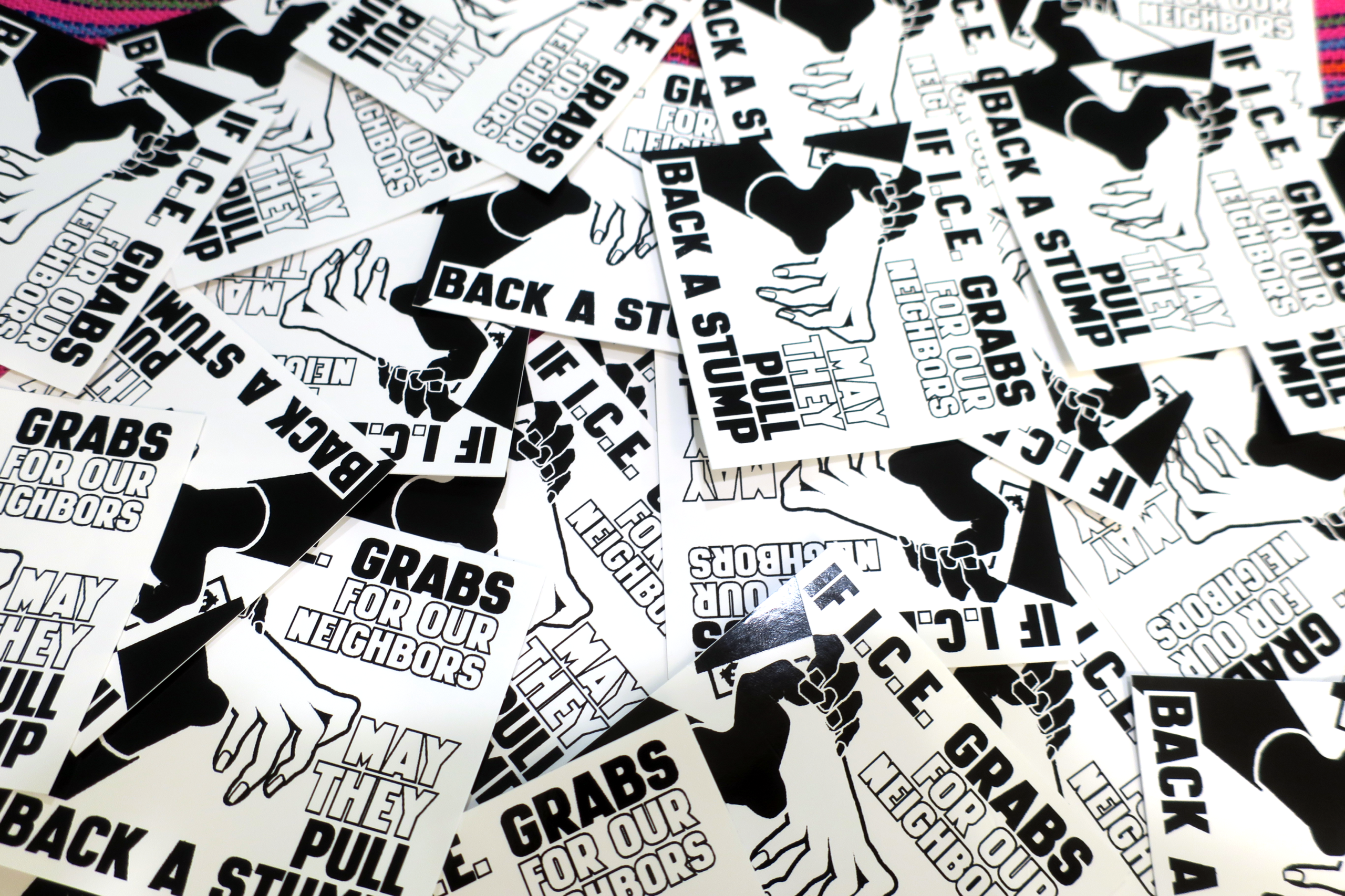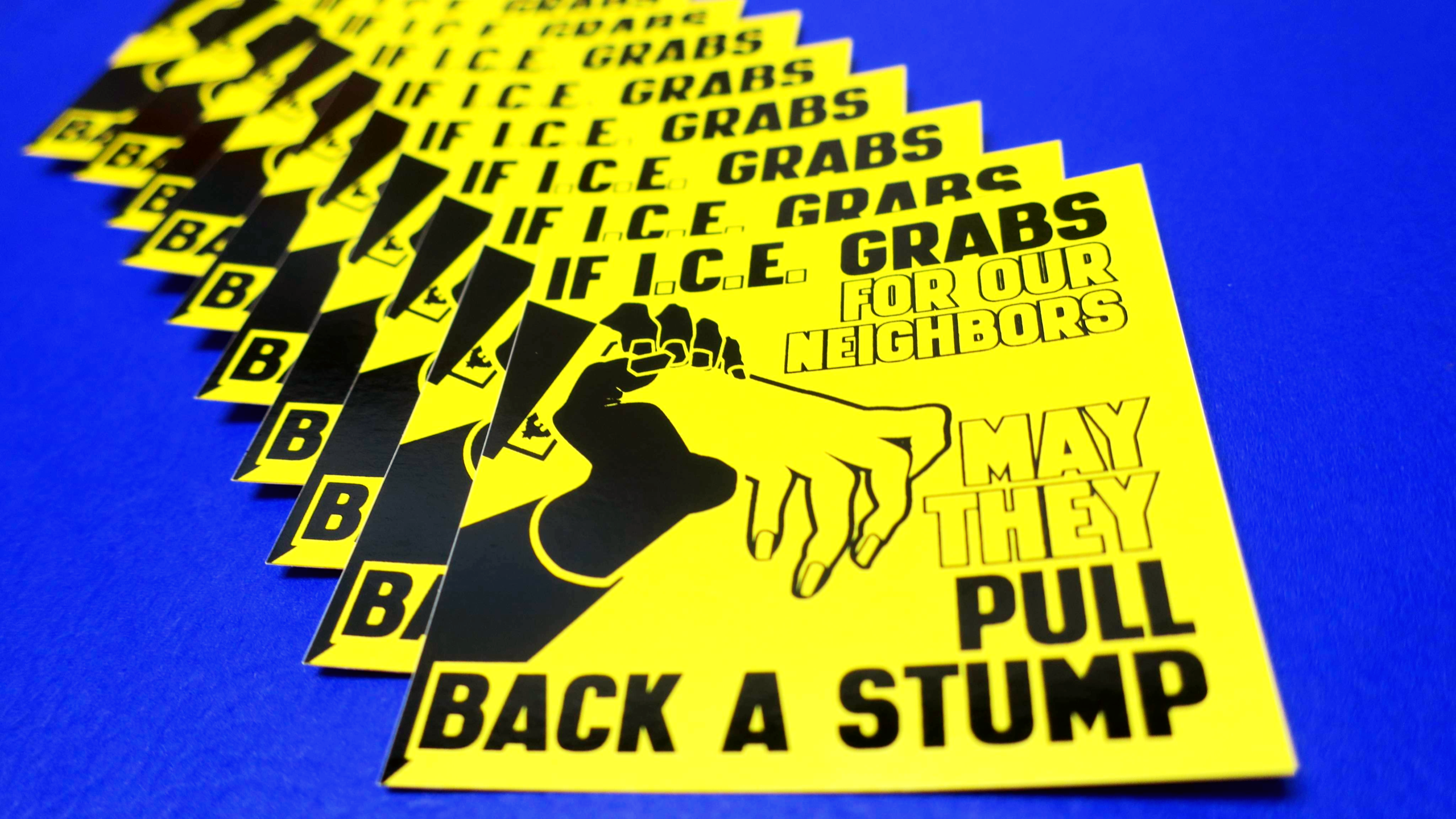Design simplified and modified from Leon Letkar’s 1928 poster “Prepare to Resist the Coming Reaction,” with the Nazi swastika cufflink replaced with the Department of Homeland Security eagle.